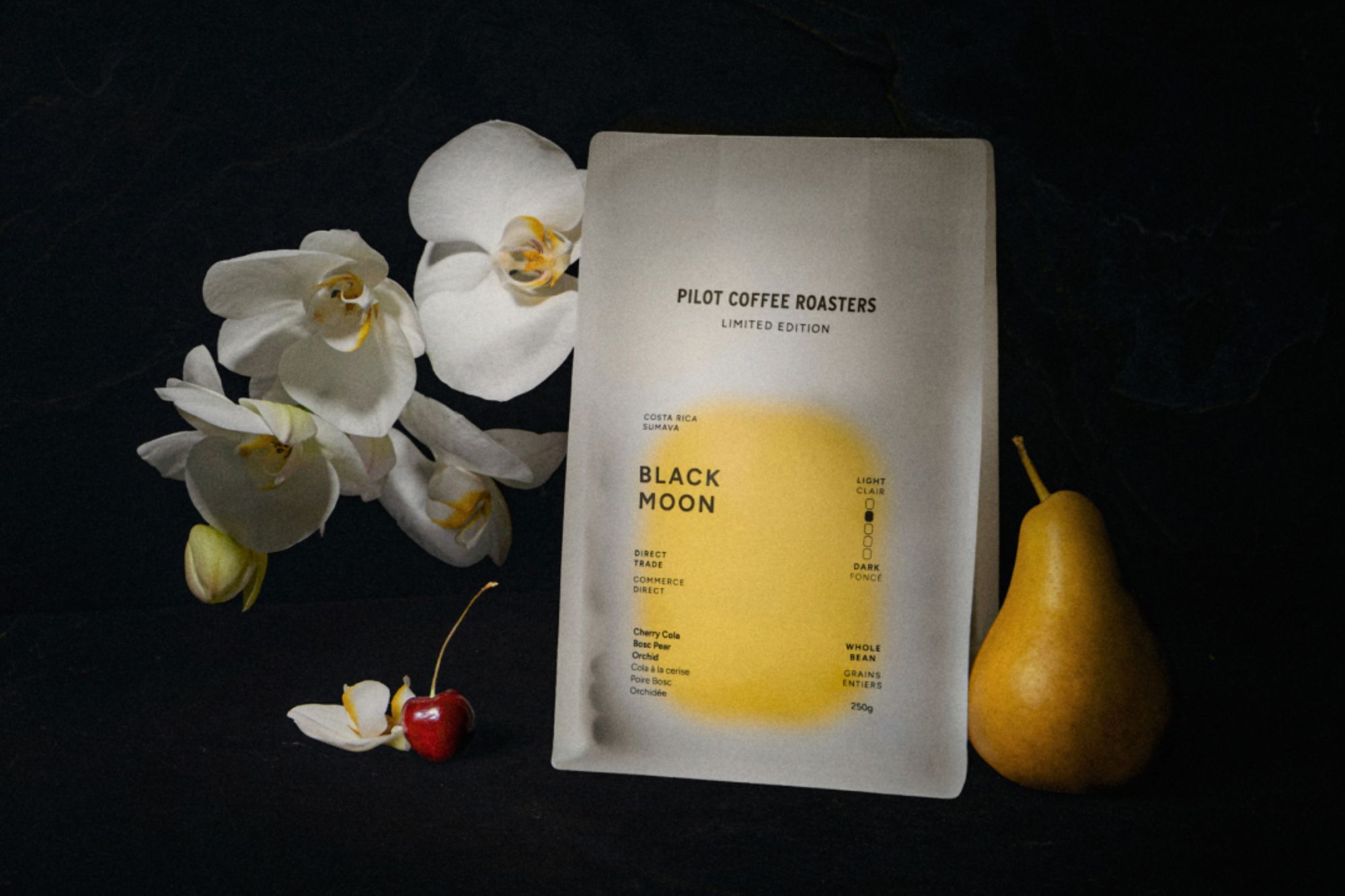 The yellow glow is a tie back to our main brand colour and a play on the glow of a full moon. We always try to present our limited edition coffees in a manner that is compelling and stands out from our core coffee blends yet is still recognizable as Pilot Coffee Roasters.