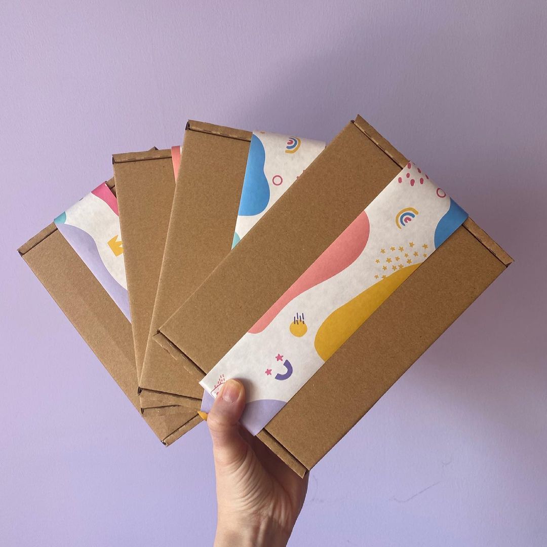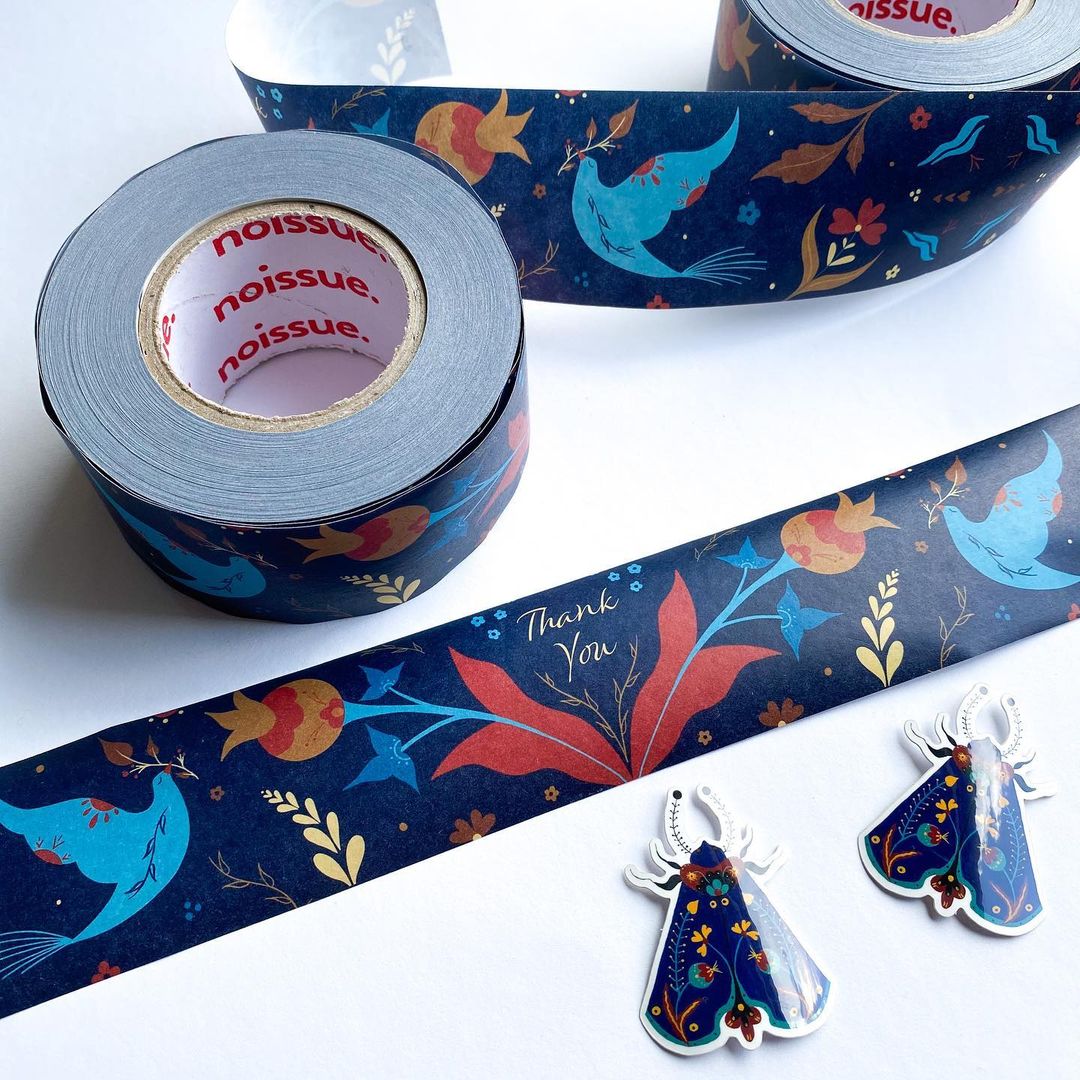 The noissue tape works best with paper-based products like plain boxes or kraft mailers, and our eco-friendly stickers bond beautifully as an extra added touch!